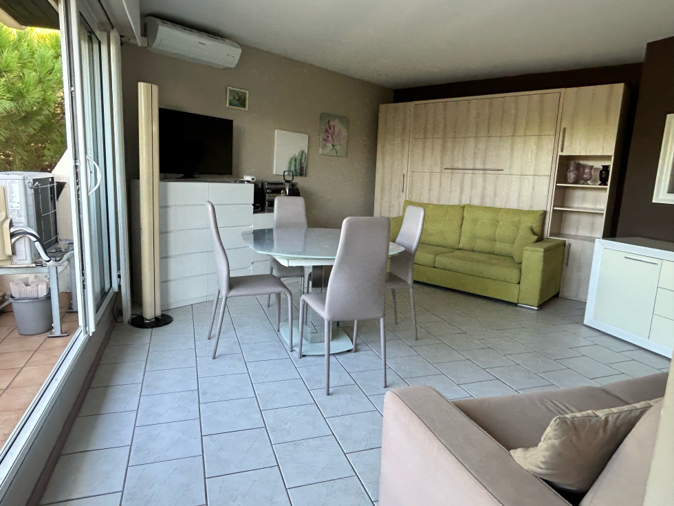 PORT CAMARGUE - SECTEUR PLAGE NORD. EN EXCLUSIVITE DANS NOTRE AGENCE : Dans une superbe résidence avec piscine se trouvant à 150 m de la plage et des commerces. Appartement d'angle de type 2 pièces au 2e et dernier étage. Totalement rénové vous profiterez d'une cuisine de qualité toute équipée, double vitrage, volets électriques et climatisation réversible dans les deux pièces de vie. Un bien atypique vous permettant de jouer au gré de vos envies avec la disposition des pièces. Une entrée avec placards, une grande cuisine fermée, un salon-chambre de 22 m² avec un lit escamotable vertical avec canapé, une salle d'eau avec WC suspendus. Le bien est vendu meublé. En plus de la surface indiquée un balcon d’environ 5 m² attenant aux deux pièces. Parking commun sécurisé dans la résidence. Taxe foncière 2024 : 912€ Nombre de lots : 375