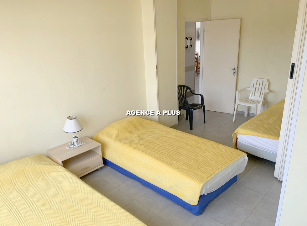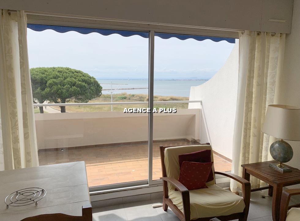 EN EXCLUSIVITÉ PORT CAMARGUE - SECTEUR PLAGE NORD Dans une superbe résidence face à la mer et à 100 m des commerces. Un appartement de type 3 pièces traversant au 2e étage (OUEST côté séjour / EST côté chambres) offrant une magnifique VUE MER depuis une terrasse de 7.79 m². Il est composé d'un séjour avec cuisine ouverte, une salle d'eau, un WC et 2 chambres avec balcons mesurant 5.16 m² et 4.56 m². Vendu en partie meublé avec un parking privé et un cellier privé en sous-sol. Bien soumis au statut juridique de la copropriété. Charges annuelle de copropriété : 1438.62€ fond loi ALUR compris et eau chaude commune comprise selon consommation. Nombre de lots : 177 à usage d'habitation.