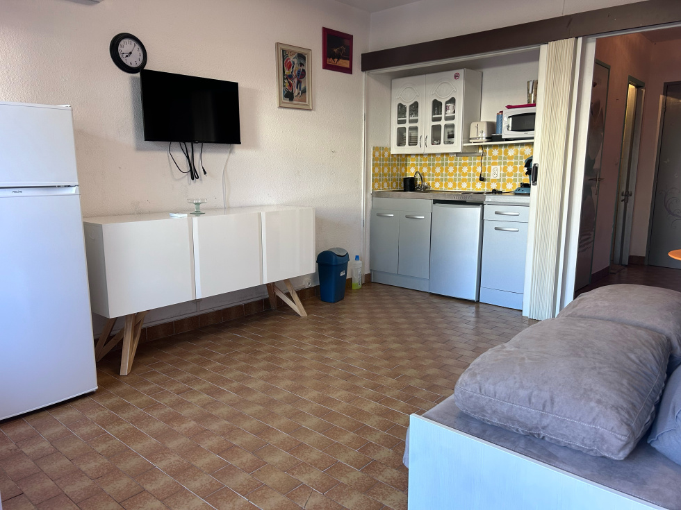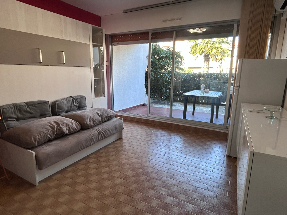 EXCLUSIVITÉ PORT CAMARGUE - SECTEUR PLAGE NORD Dans une résidence située à 200 m de la plage et à 100 m des commerces et du port de plaisance. Studio cabine en rez-de-chaussée surélevé. Un agréable extérieur d'environ 14 m² exposé Nord-Ouest. A l'intérieur vous disposez d'une cabine à l'entrée pour lits superposés, une salle d'eau, un WC séparé et un séjour avec cuisine comprenant un canapé lit escamotable. Climatisation réversible recemment installée. Vendu meublé. Parking public gratuit devant la résidence. Bien soumis au statut juridique de la copropriété.