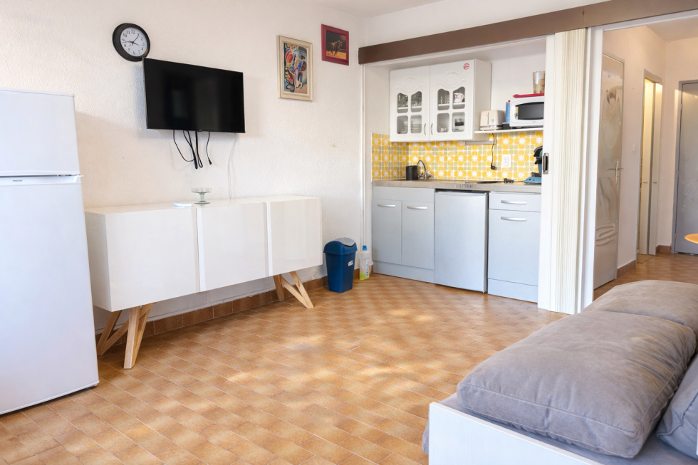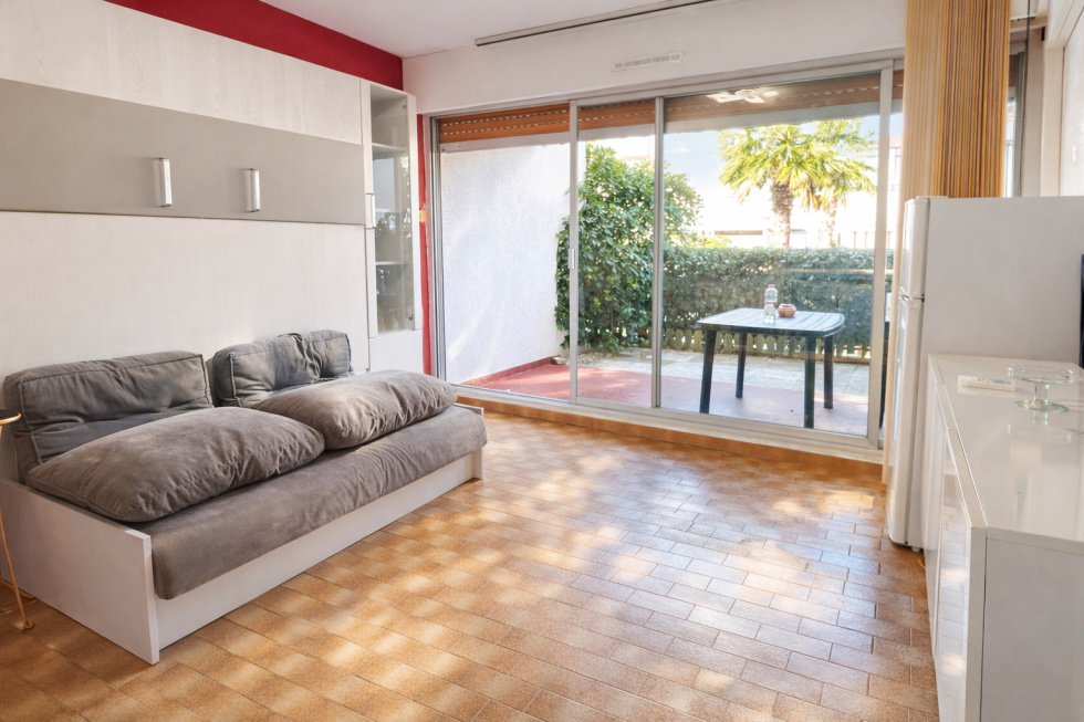 EXCLUSIVITÉ PORT CAMARGUE - SECTEUR PLAGE NORD Dans une résidence située à 200 m de la plage et à 100 m des commerces et du port de plaisance. Studio cabine en rez-de-chaussée surélevé. Un agréable extérieur d'environ 14 m². A l'intérieur vous disposez d'une cabine à l'entrée pour lits superposés, une salle d'eau, un WC séparé et un séjour avec cuisine comprenant un canapé lit escamotable. Climatisation réversible recemment installée. Vendu meublé. Parking public gratuit devant la résidence.Charges mensuelles de copropriété : 57€/mois (comprenant dépenses de production d'eau chaude, le montant peut donc varier selon la consommation) Taxe foncière : 628€