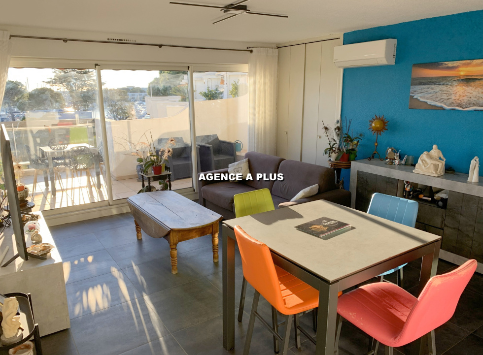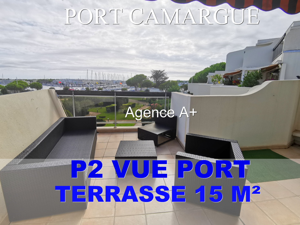 PORT CAMARGUE - SECTEUR PLAGE NORD Dans une superbe résidence a quelques pas des commerces et à 200 m de la plage. Appartement de type 2 pièces traversant entièrement rénové comprenant un séjour avec cuisine ouverte, une salle d'eau, un WC séparé et un chambre. Une terrasse de 13.14 m² exposée SUD-OUEST offrant une magnifique VUE PORT. La surface carrez retenue est de 47.97 m² mais les placards ne sont pas comptabilisés dans la surface carrez, en tenant compte de cet élement la surface au sol est de 51. 77m². Vendu avec un parking privé et un cellier privé en sous-sol mesurant 3.61 m². Double vitrage, store banne électrique. Bien soumis au statut juridique de la copropriété. Nombre de lots : 89 à usage d'habitation