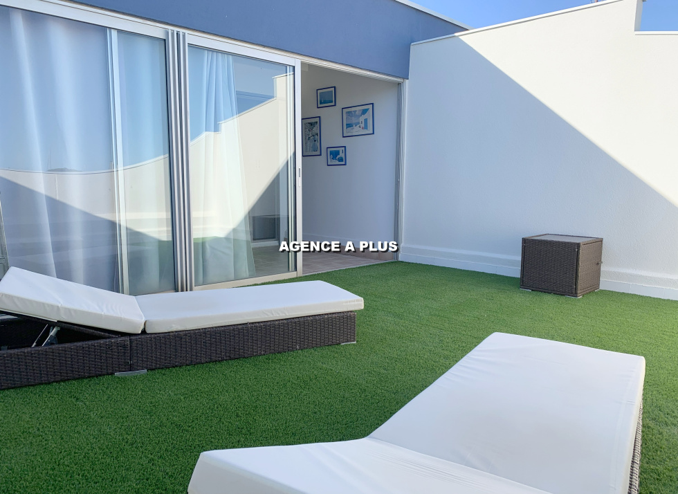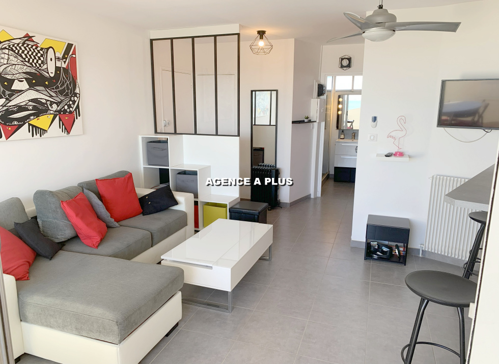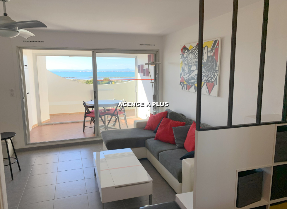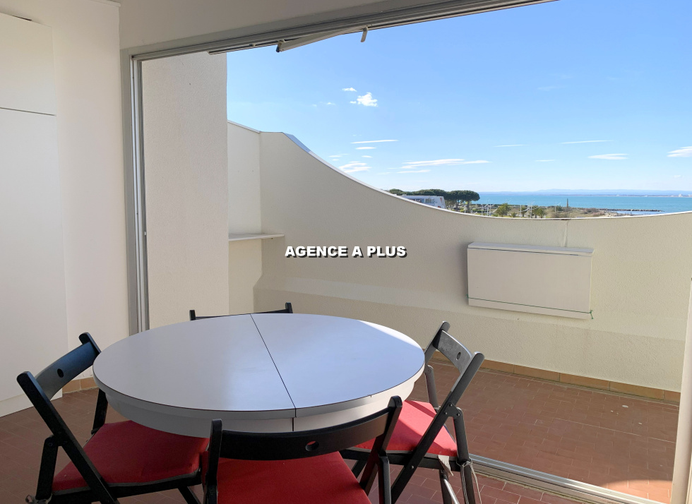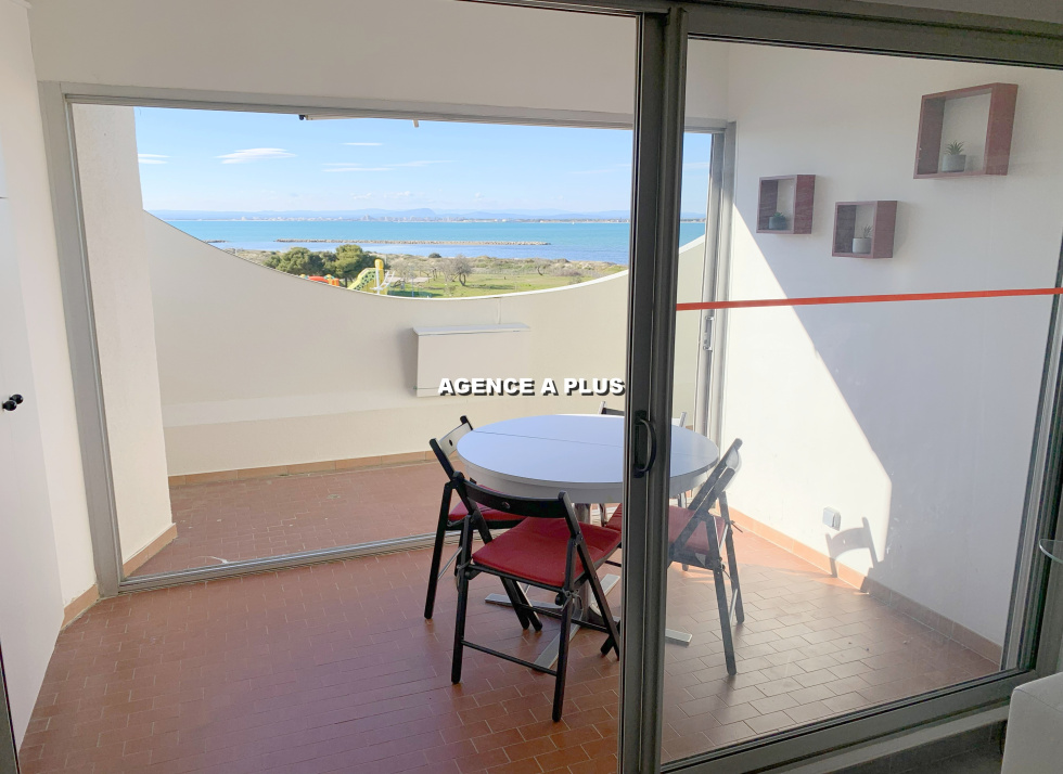 PORT CAMARGUE - SECTEUR PLAGE NORD Dans une belle résidence située juste en face de la plage et des commerces. Appartement traversant au 3e et dernier étage de type 2 pièces totalisant 33.87 m² en loi carrez et totalisant 48.29 m² avec les vérandas. Une belle pièce de vie avec cuisine ouverte, une véranda de 6.68 m² ainsi qu'une terrasse de 7.97 m² offrant une superbe VUE MER, une salle de d'eau, un WC séparé, et une chambre avec une véranda attenante de 7.74 m² transformée en chambre cabine. Une grande terrasse de 20.75 m² exposée Sud-Est. Vendu avec un cellier privé en sous-sol. Possibilité d'acquérir en sus un GARAGE de 13 m² pour 33 000€ honoraires d'agence inclus . Bien soumis au statut juridique de la copropriété. Charges annuelle de copropriété : 1262.94€ (Fond loi ALUR compris ainsi que l'eau chaude sanitaire et le chauffage selon consommation réelle) Nombre de lots : 91 à usage d'habitation Taxe foncière :868 €. Visite virtuelle : https://tour.previsite.com/7B0DB95F-3A2F-FBE4-1D51-BCE779B9232D