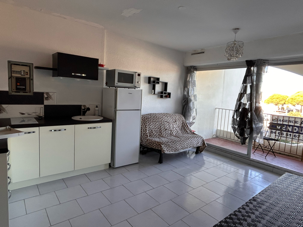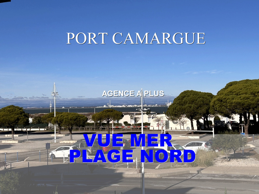 PORT CAMARGUE - SECTEUR PLAGE NORD Dans une belle résidence avec piscine. Studio au 1er étage offrant une petite vue mer en seconde ligne depuis la terrasse de 5.00 m² exposée Nord-Ouest. Il est composé d'un séjour avec cuisine ouverte, salle d'eau et un WC séparé. A l’origine il s’agissait d’un studio double cabine dont les cloisons ont été supprimés, il est donc possible de le faire revenir à sa configuration d’origine. Volet roulant électrique. Vendu meublé avec un parking privé et un cellier privé. Bien soumis au statut juridique de la copropriété. Nombre lots : 289 à usage d'habitation Charges de copropriété : 638.12€/an, taxe foncière 564€.