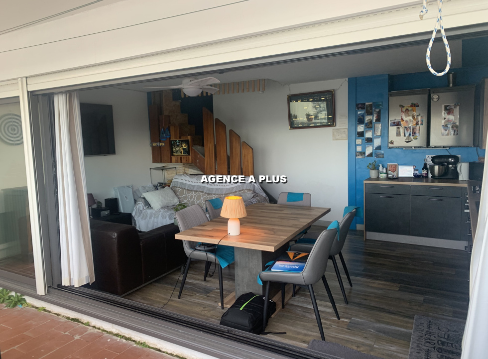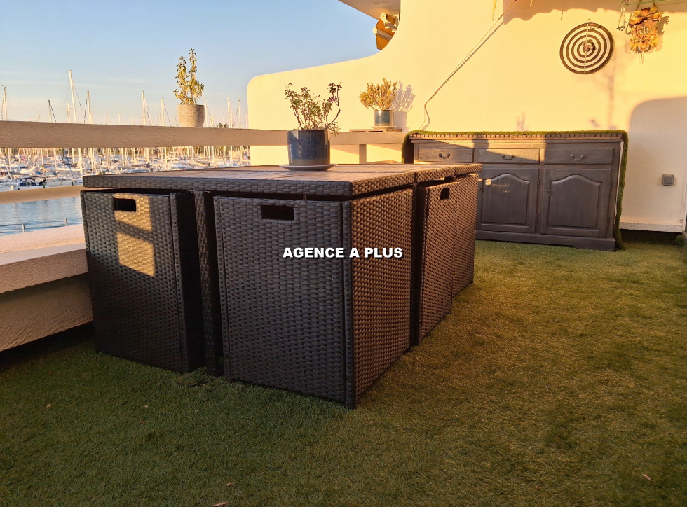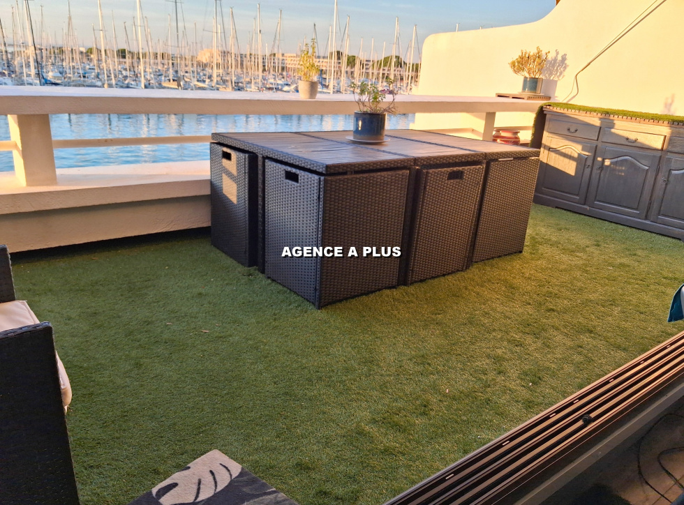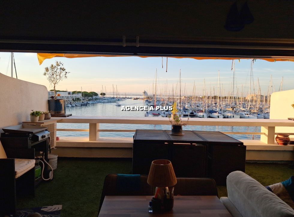 PORT CAMARGUE - SECTEUR MARINA 2 MARINA de type 2 pièces en duplex inversé au 3ème étage à Port Camargue. Niveau 0 : Une chambre, une salle d'eau et un WC. Niveau -1 : Un large séjour avec cuisine ouverte et une terrasse de 13.72 m² exposée NORD-OUEST offrant de magnifiques couchers de soleil et une superbe vue sur la sortie du port. APPONTEMENT DE 4 m X 15 m dont l'accès s'effectue a quelques pas de l'habitation. Parking privé, cellier privé et coffre de quai. Bien soumis au statut juridique de la copropriété. Nombre de lots : 142 à usage d'habitation Charges annuelle de copropriété : 662.56€ Fond loi ALUR compris Taxe de quai : 527€