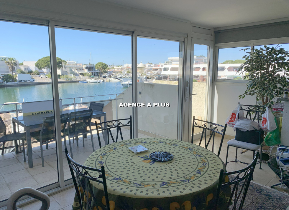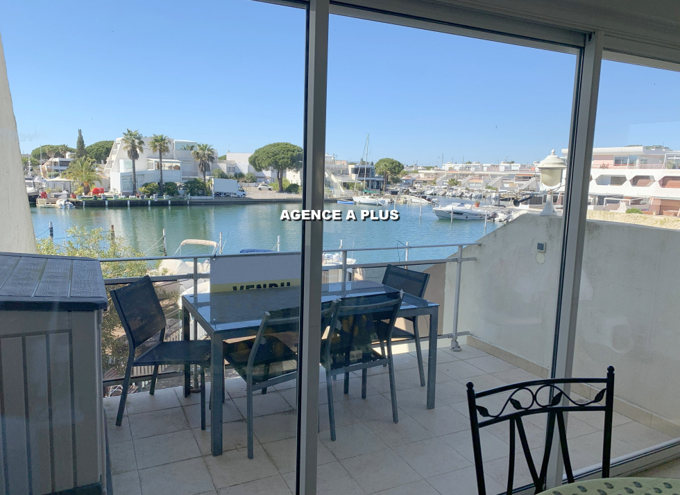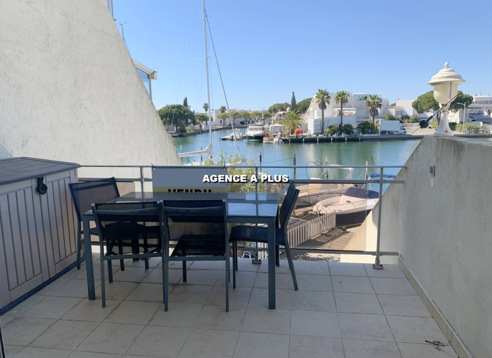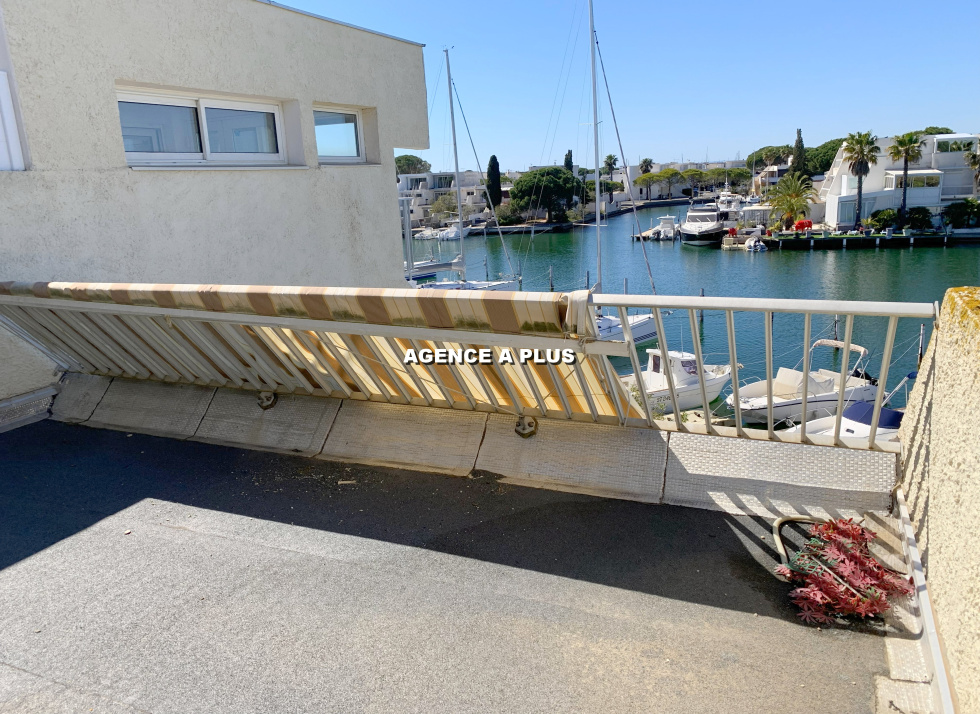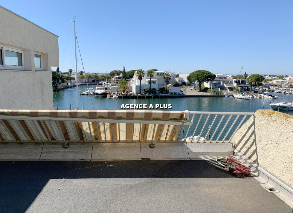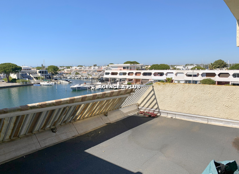 PORT CAMARGUE - SECTEUR MARINA 1 Marina de type 4 pièces en duplex au 1er étage. Au Rez-de-chaussée : Accès principal par le garage de 17.62 m² (environ 5.33m x 3.31m) et possibilité de stationner devant le garage Un appontement de 4m X 16 m avec un quai privatif de 28 m² (Accès direct depuis le séjour) Au 1er étage : Une entrée, un séjour avec cuisine ouverte, une chambre, une salle d'eau et un WC. Une terrasse de 7.41 m² exposée Ouest côté quai et un balcon de 8.83 m² à l'entrée du bien. Au 2e étage : 2 chambres, un grand palier, une salle de bains et un WC. Un balcon de 5.30 m² attenant à une chambre et un solarium de 18.30 m² côté quai. Bien soumis au statut juridique de la copropriété. Nombre de lots à usage d'habitation : 8 Taxe de quai : 537€ (Hors répercution de taxe foncière)