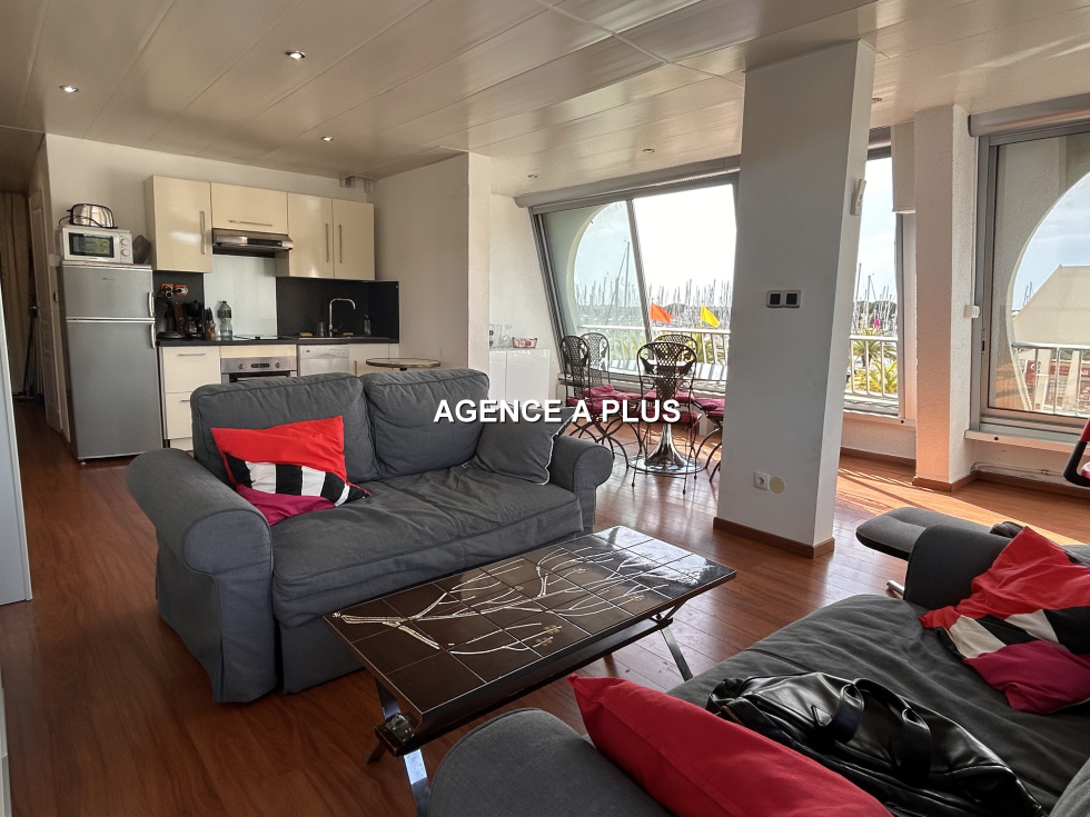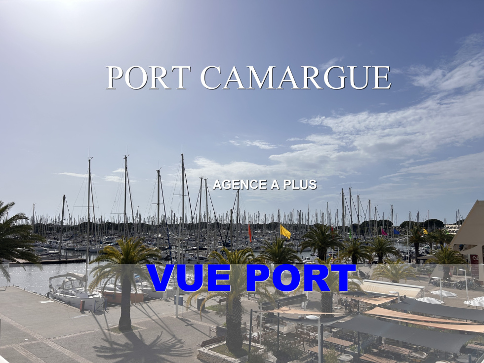 PORT CAMARGUE – SECTEUR PLAGE NORD Dans une résidence de bon standing avec ascenseur, grand studio aménagé en 2 pièces. Situé au 2ᵉ étage avec belle vue sur le port et double exposition Nord-Est / Nord-Ouest. Vaste séjour lumineux avec cuisine ouverte, petite chambre indépendante (aveugle), salle de bains avec WC. Loggias fermées et intégrées au séjour. Surface loi Carrez : 28,52 m². Surface au sol : 46,16 m². Vendu avec parking privatif et cellier d’environ 2,5 m². Bien soumis au statut de la copropriété. Charges annuelles : 750 €. Taxe foncière : 648 €.